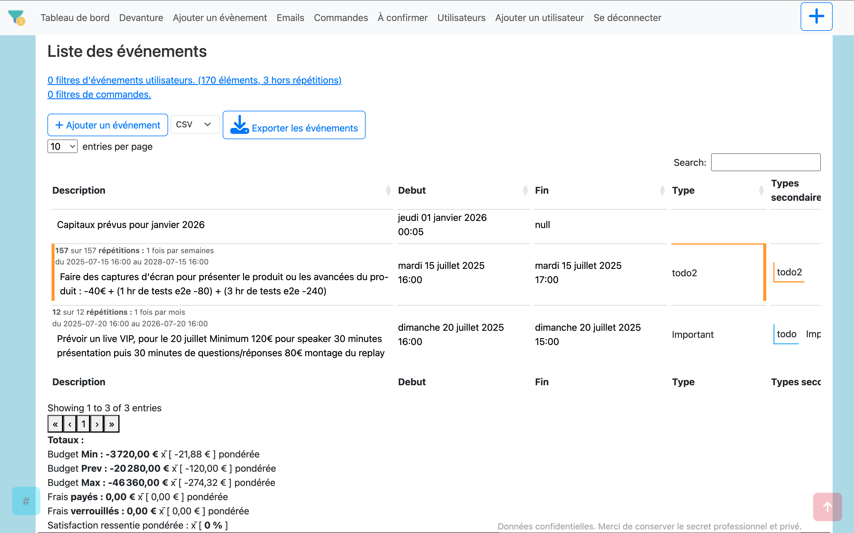 | Cockpit (Suivis et administrations backend) | ||||||||||||||||||||||||||||||||||||||||||||||||||||||||||||||||||||||||||||||||