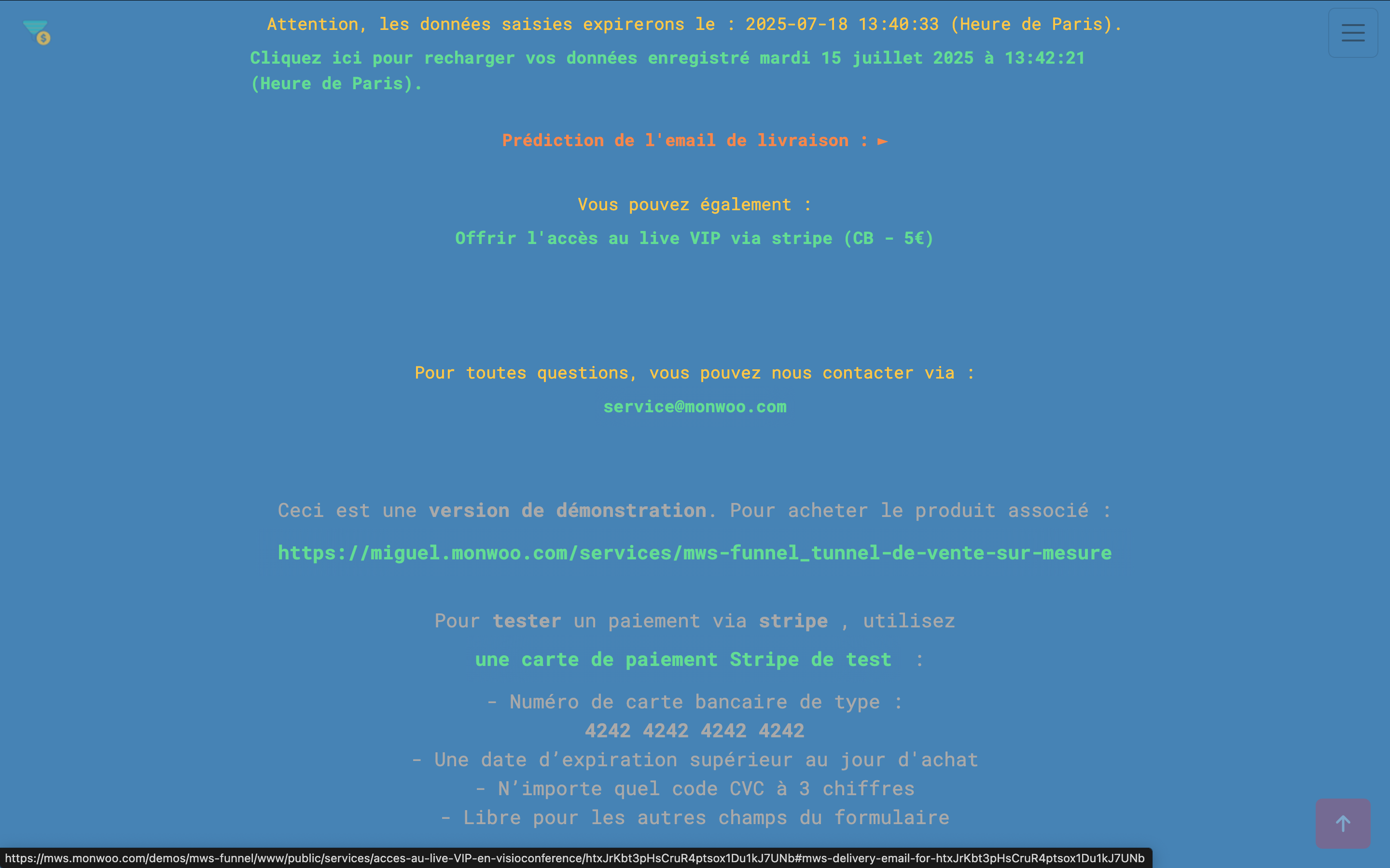 Ce site est une démonstration. Revenir au début : mws.monwoo.com/demos/mws-funnel/www/public