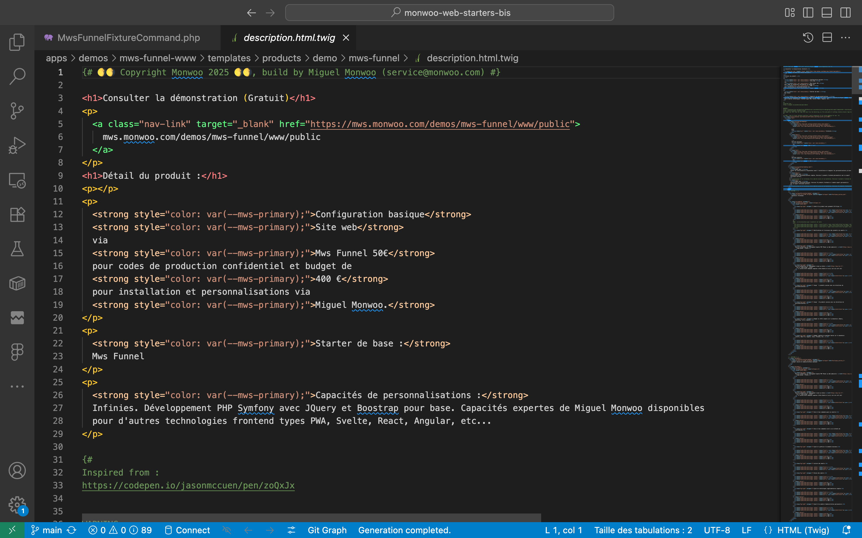 Capacités de personnalisations : Infinies. Développement PHP Symfony avec JQuery et Boostrap pour base. Capacités expertes de Miguel Monwoo disponibles pour d'autres technologies frontend types PWA, Svelte, React, Angular, etc...